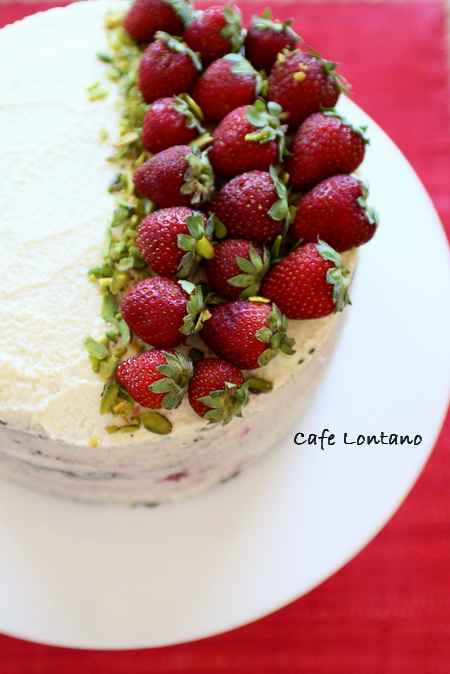 Süslemek için küçük çilekleri bütün olarak kullanabilirsiniz. Ben çilekleri yeşil saplarıyla kullanmayı sevdiğim için yanına yeşili bütünleyecek şam fıstığını ekliyorum ama sizin tercihiniz sizin zevkinize kalmış.