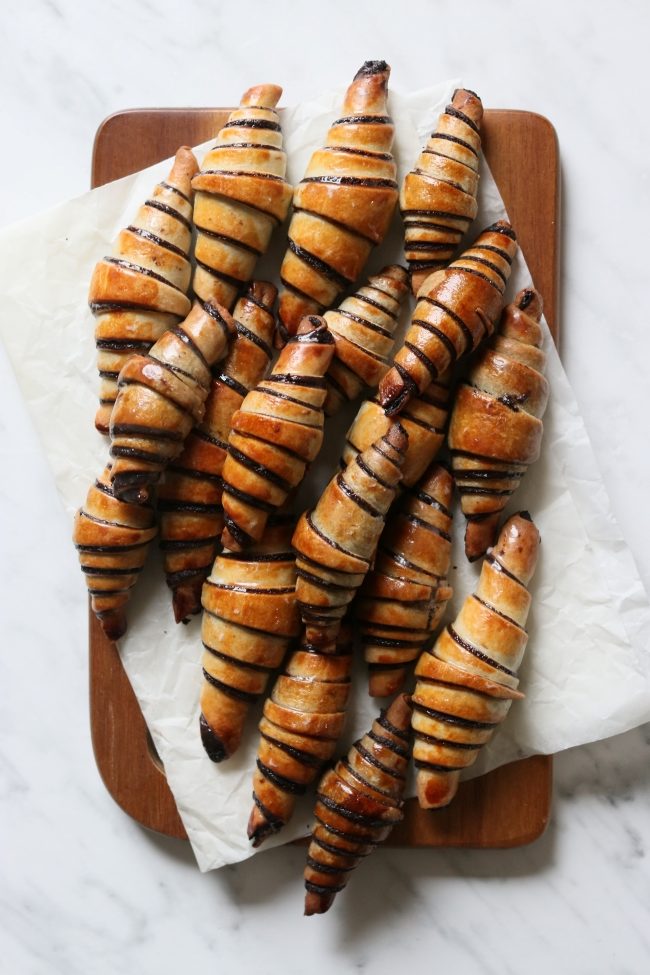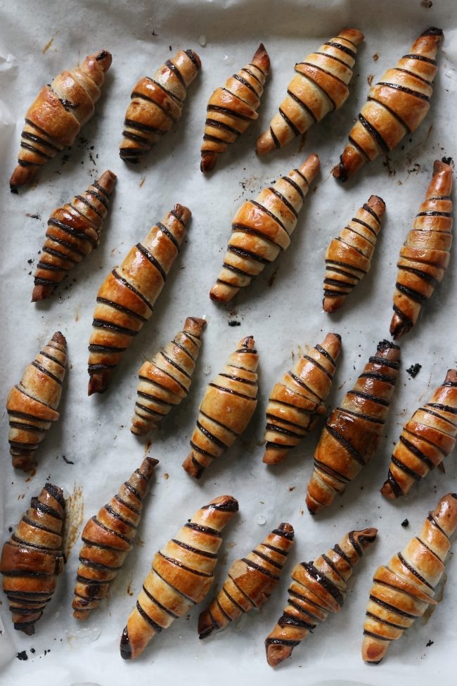 - Taban uzunluğu 5-8 cm olacak şekilde üçgenler keserek kruvasan şeklinde rulo yapabilirsiniz.